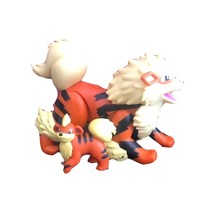 Wer Pokémon mag, der wird diese wundervoll verarbeitete Arkani Figur lieben. Das Feuer Pokémon existiert bereits seit der ersten Spielegeneration und entwickelt sich aus dem Fukano Pokémon. Die Arkani Figur ist ein vierbeiniges, hundeähnliches Pokémon, welches orange, beige und schwarz gefärbt ist. Die auf dem Kopf befindliche Mähne führt bis ins Gesicht und teilt die Augen. An den Beinen, sowie hinten am Schwanz hat es ebenfalls helles Fell.