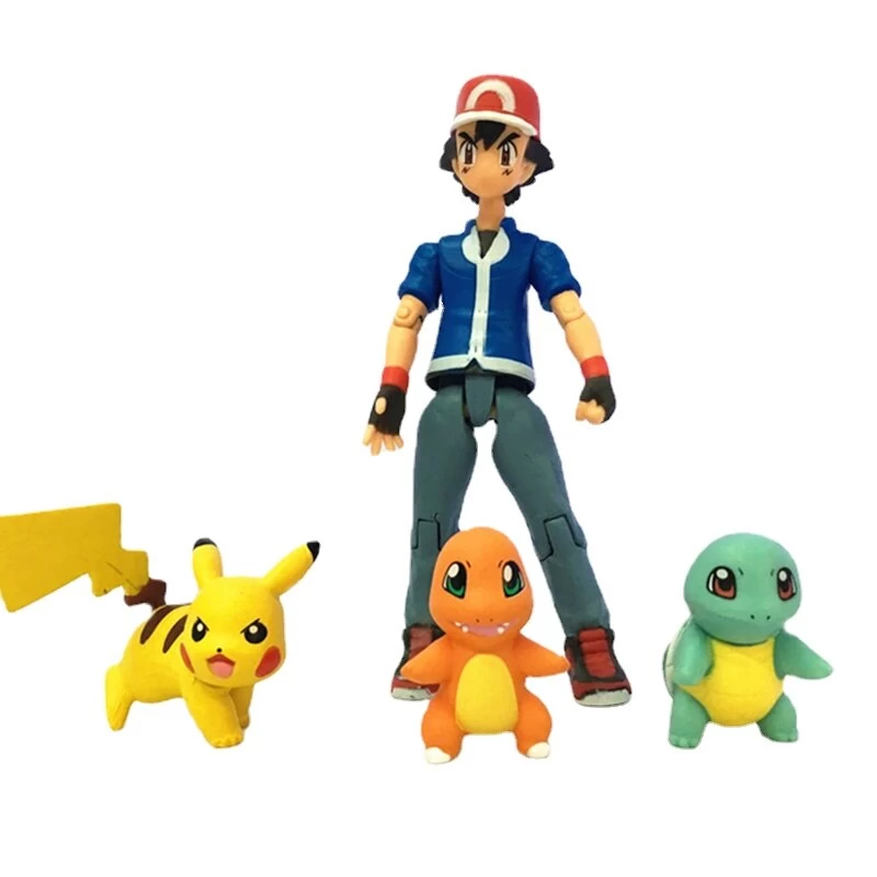 Pokémon Spielfiguren Set: Ash Ketchum, Pikachu, Glumanda und Schiggy