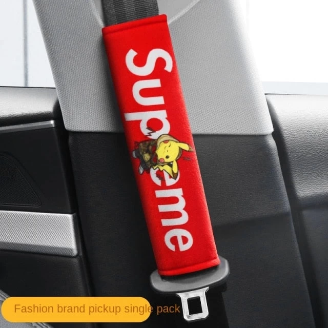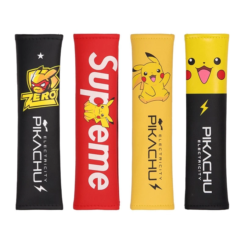 Diese Sitzgurt bzw. Sitzgurtabdeckungen sind was für echte Pokémon Fans und verzücken sicher auch die Kinder hinten auf den Rücksitzen. Die Abdeckungen haben nämlich auf der Vorderseite das beliebte Pokémon Pikachu bedruckt. Die Abdeckung gibt es in vier verschiedenen Varianten. In gelb mit einem hüpfenden Pikachu und in rot mit dem mittig sitzenden Pikachu und dem beliebten Supreme Emblem im Hintergrund. Die beiden anderen Gürtelschoner sind in schwarz mit Pikachu Aufdruck.
