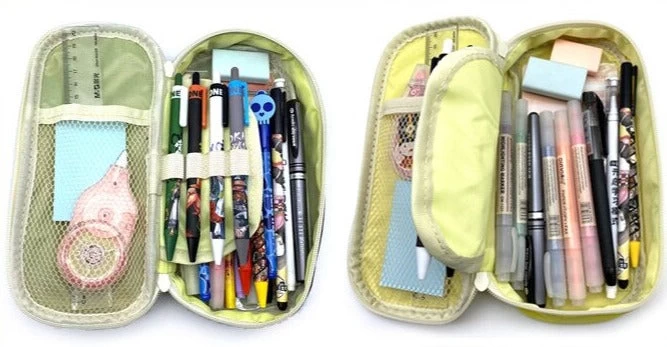 Die Mappe hat zwei Reißverschlüsse, sodass alles sicher verstaut ist. Sie ist auch praktisch, weil sie eine kleine Innentasche für Kleinigkeiten wie Lineal oder Stifte hat. Die Mappe ist 10 mal 22 cm groß und passt in jede Schultasche.