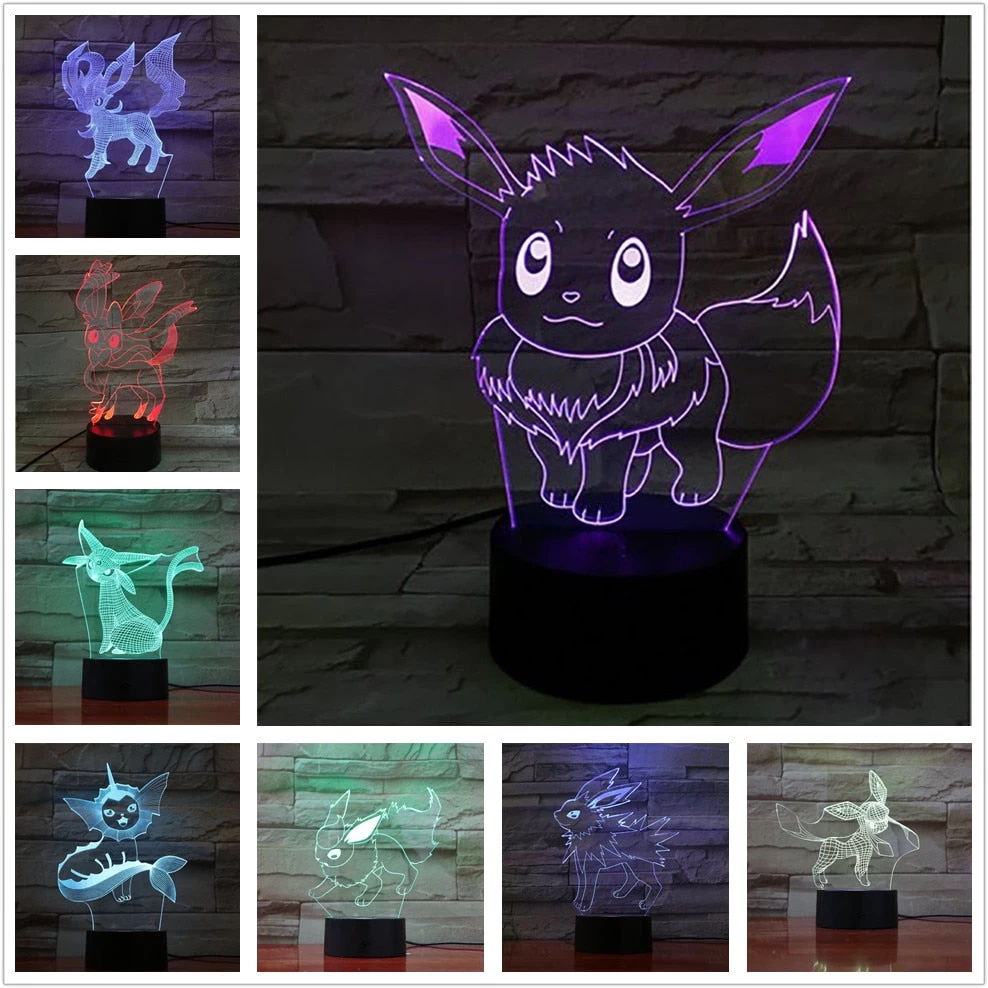 Wähle Dein Lieblings Evolifür diese magische Pokemon Lampe mit Farbwechsel und 3D Illusion.