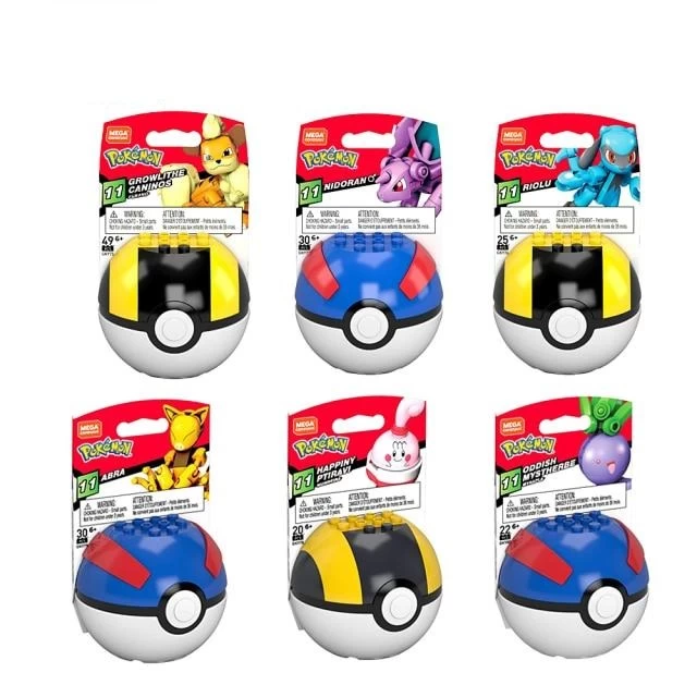 Mega Bloks Pokemon Serie mit Abra Oddish Riolu uvm. Ultra Ball Baustein. Mega Baustein Pokebälle mit Pokemon Figur.