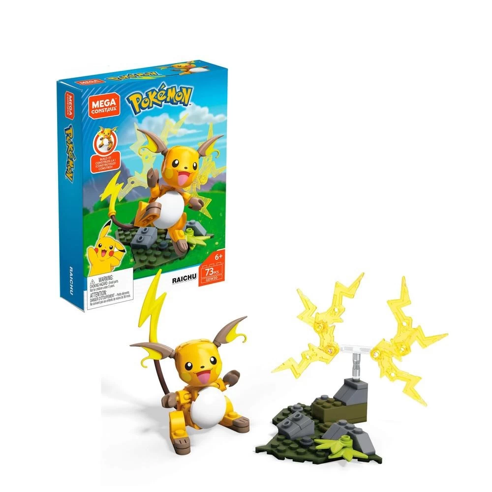 Raichu sorgt mit doppelter Blitzstärke für noch mehr Action! Pokémon-Trainer können ihre Elektroattacken üben, wenn sie mit ihrem Elektro-Pokémon Raichu in den Kampf ziehen! Kinder können dieses beliebte Pokémon zusammenbauen und mit seinem kräftigen Schweif jeden Kampf blitzschnell für sich entscheiden! Einfach an den letzten Blitzeffekten feilen und schon muss der Gegner einen weiteren Donnerblitz über sich ergehen lassen. Perfekt für Kinder ab 6 Jahren