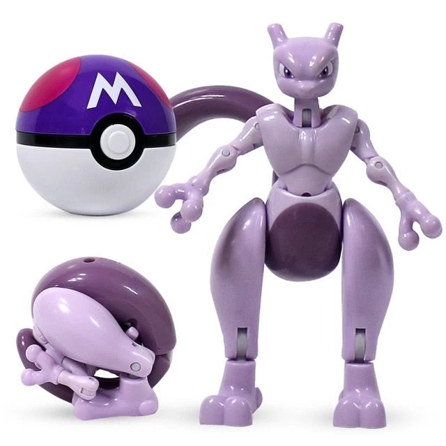 Pokemon Spielzeug Set mit Mewtwo / Mewtu und Pokeball. Die Figur lässt sich zusammenklappen und im Pokeball unterbringen.