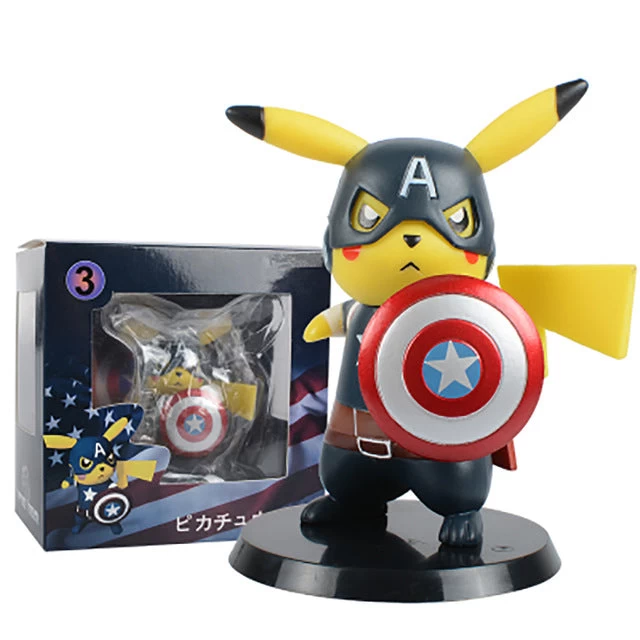 Pikachu trifft auf Captain America. Auch im Captain America Outfit macht Pikachu eine super Figur und würde wahrscheinlich den einen oder anderen Preis als Cosplayer bekommen.