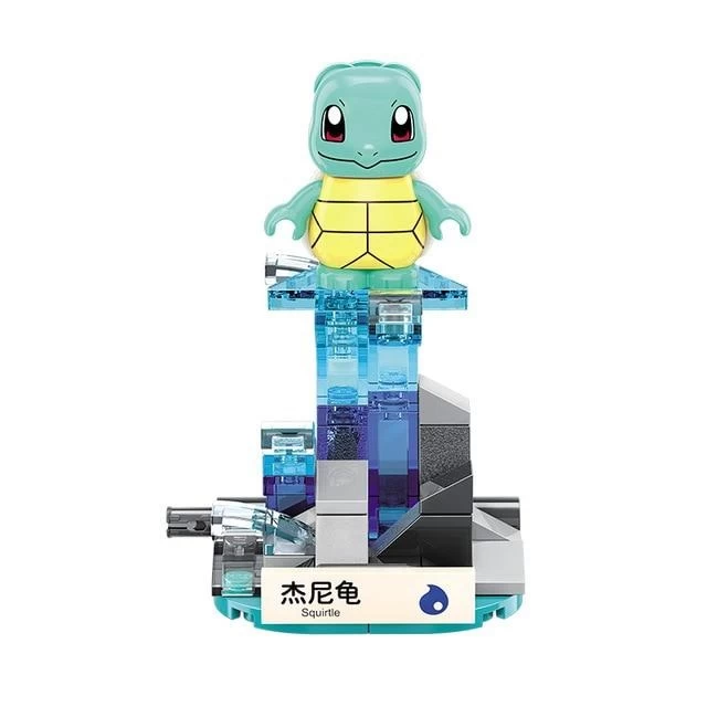 Meowth / Mauzi, Pikachu, Squirtle / Schiggy, Bulbasaur / Bisasam, Eevee / Evoli oder Charmander / Glumanda als Baustein Figuren. Zum selbst bauen, spielen, sammeln und Spaß haben.