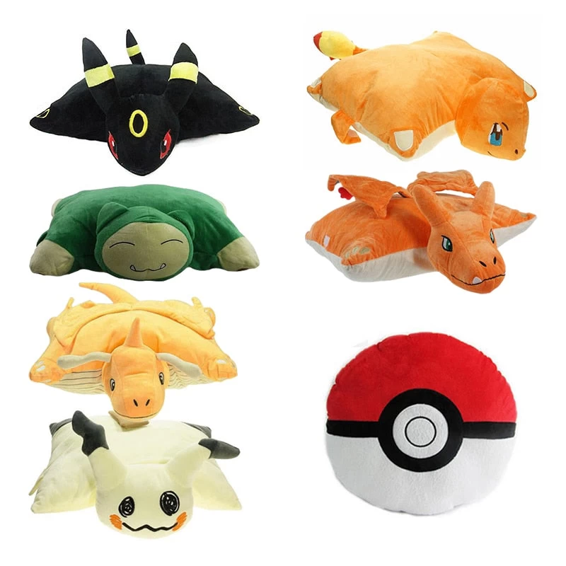 Flauschige Pokemon Kissen in verschiedenen Motiven. Von Mimikyu, Charmander, Charizard, Snorla bis hin zum Pokeball.
