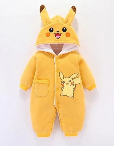 Dieses bezaubernde Baby-Kostüm stellt die bekannte gelbe, elektrische Anime-Figur dar. Das Kostüm besteht aus einem flauschigen Anzug inkl. Kapuze und Schwanz. Das Pikachu-Kostüm ist in einem schönen gelb gehalten und mit schönen Details versehen. Besonders süß ist das Gesicht auf der Kapuze mit den abstehenden Ohren.