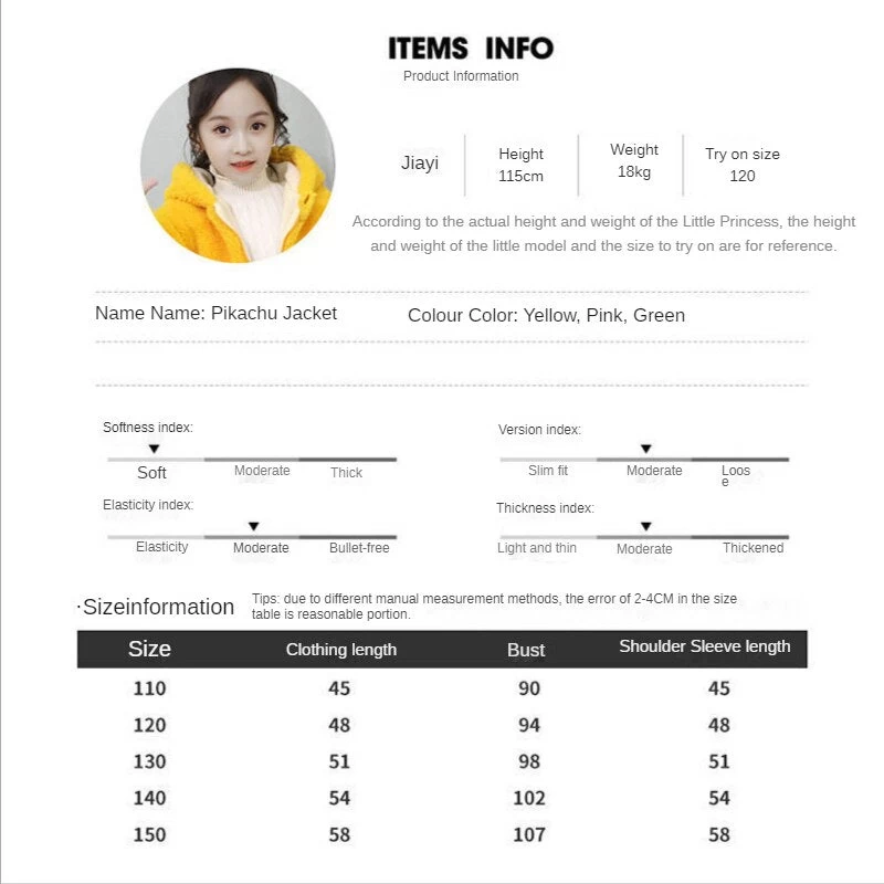 Diese Pikachu Kapuzenjacke für Kinder sieht Super süß aus und hält zudem noch warm. Die Jacke besteht aus hochwertiger Polyester-Faser und eignet sich damit ideal für kalte Tage im Herbst oder Winter. Zudem hat der Wintermantel eine Kapuze, die ebenfalls wärmt. Auf der Kapuze ist das süße Antlitz, sowie die markanten Schlappohren des beliebten Pokémons Pikachu zu sehen ist. Damit ist die Kapuzenjacke ein absolutes Muss für Kinder die Fans von Pokémon sind.