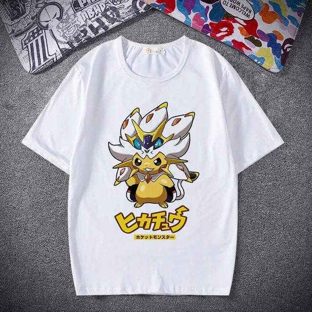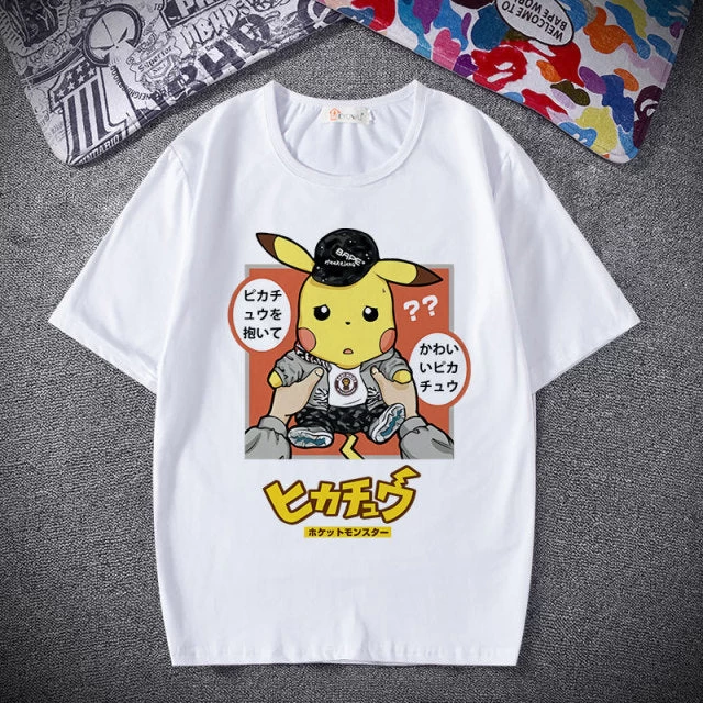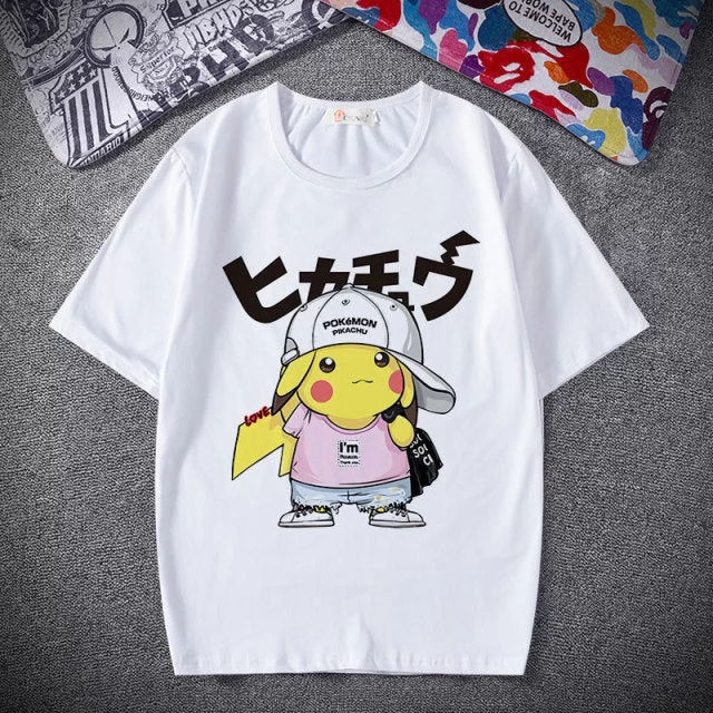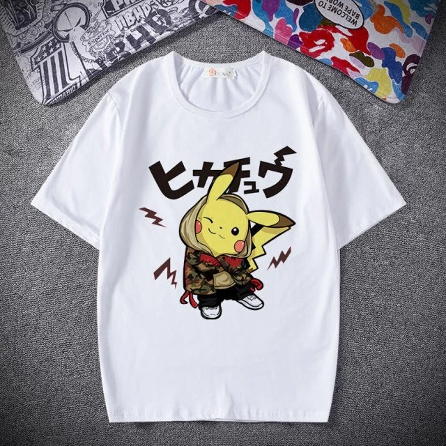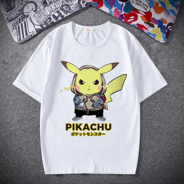 Pikachu mal anders! Und zwar als richtig cooler T-Shirt Print. Hier schlüpft der kleine gelbe Kerl in verschiedene Kostüme und Stimmungen, aber sieht natürlich wie immer richtig niedlich aus. Die Prints befinden sich auf einem klassischen Herren T-Shirt in Weiß mit Rundhalsausschnitt und regulärer Passform. Kombiniere zu dem Pikachu T-Shirt einfach deine Lieblingsjeans oder -cargo und schon bist du perfekt und lässig angezogen.