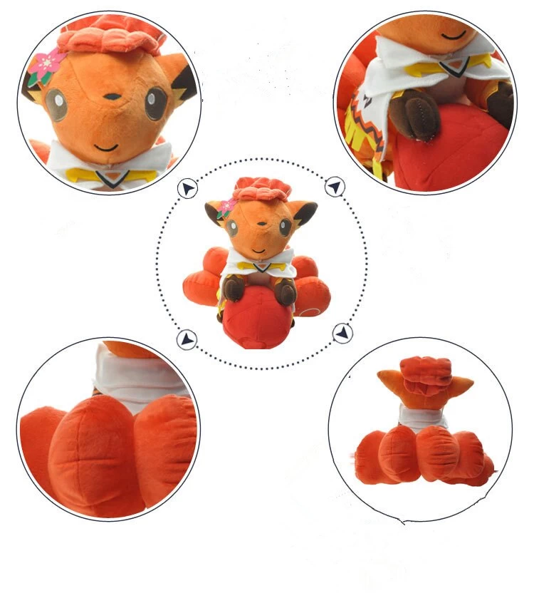 Das Pokémon Vulpix gibt es verschiedenen Entwicklungsstufen. Aber hier bekommst du Vulpix in seiner ursprünglichen Form. Das Feuer-Pokémon besitzt große Ohren und dunkelbraune Knopfaugen sowie lockiges Fell auf dem Kopf. Vulpix ist bei Pokémon-Züchtern wegen seines schönen rotbraunen und glänzenden Fells sehr begehrt, das sich bei Berührung warm anfühlt.